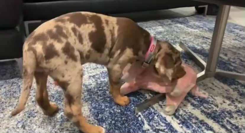 Kora’s personality is a perfect mix of playful energy and calm affection. She’s as happy exploring the outdoors as she is curled up in your lap for snuggles. One minute she’s discovering how delicious a pink leash tastes, the next she’s yawning dramatically, ready for her beauty sleep.